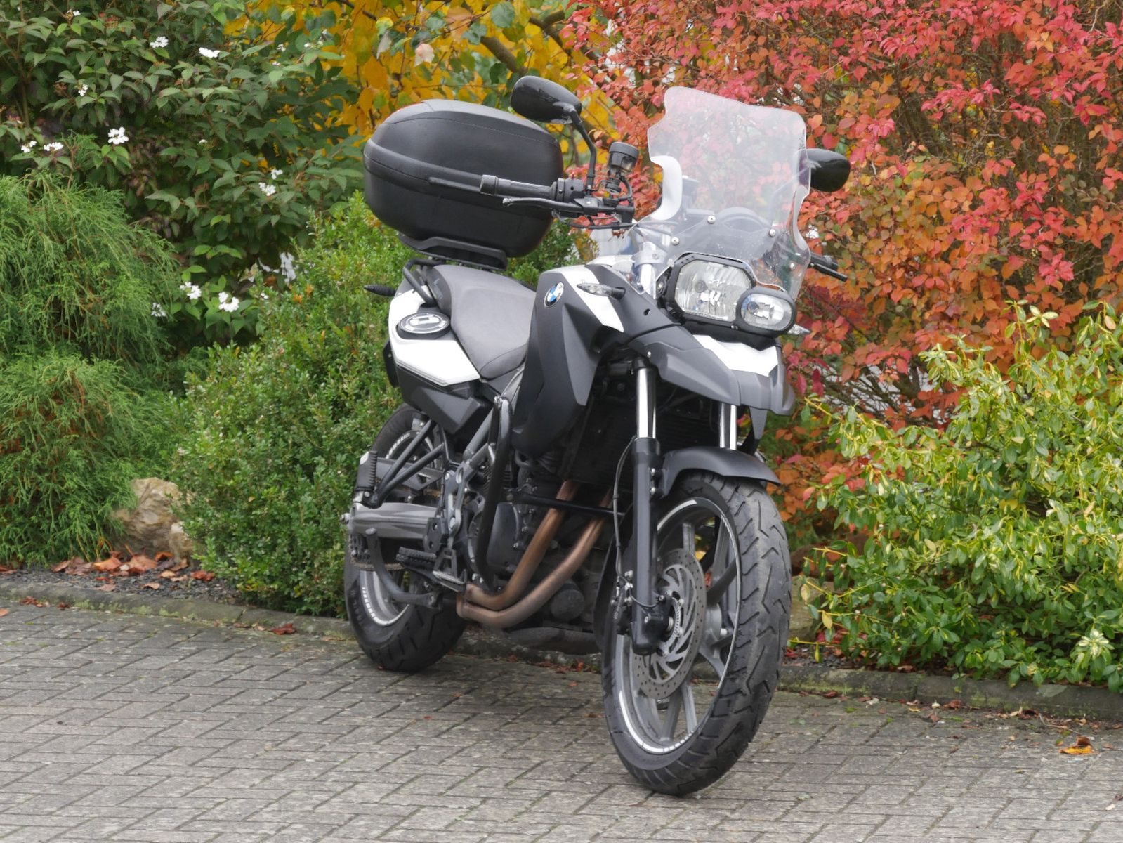 Zum Verkauf steht eine gepflegte BMW F 650 GS in elegantem Weiß mit umfangreicher Ausstattung:
