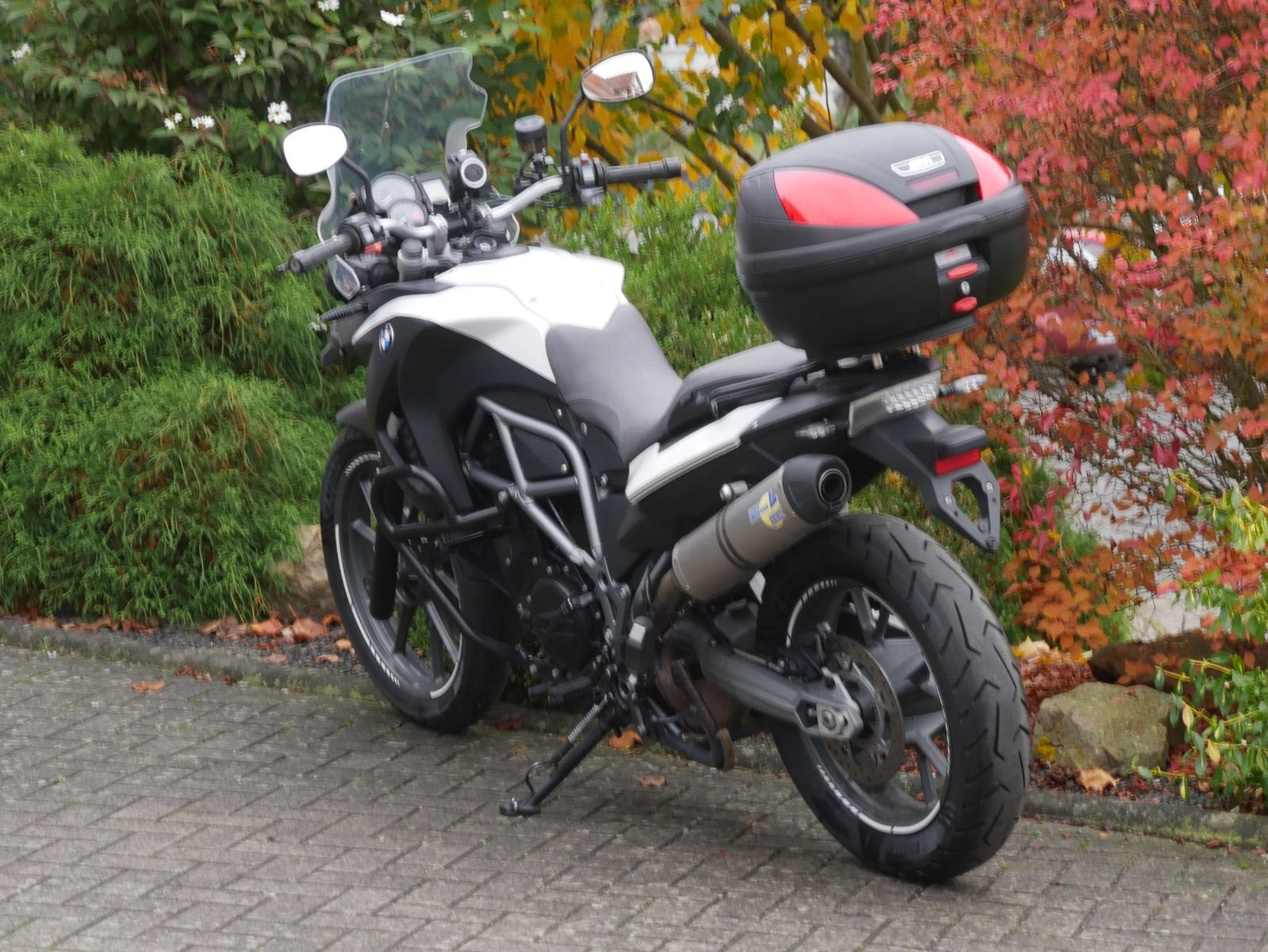 Die BMW ist tiefergelgt für eine sichere niedrige Sitzhöhe. Kürzlich wurden neue Reifen montiert. Insgesamt sind 4 Inspektionen eingetragen, vor der Auslieferung bekommt die GS noch eine frische Inspektion.