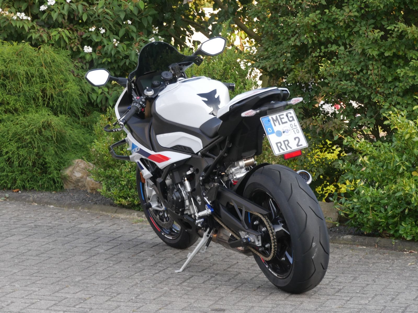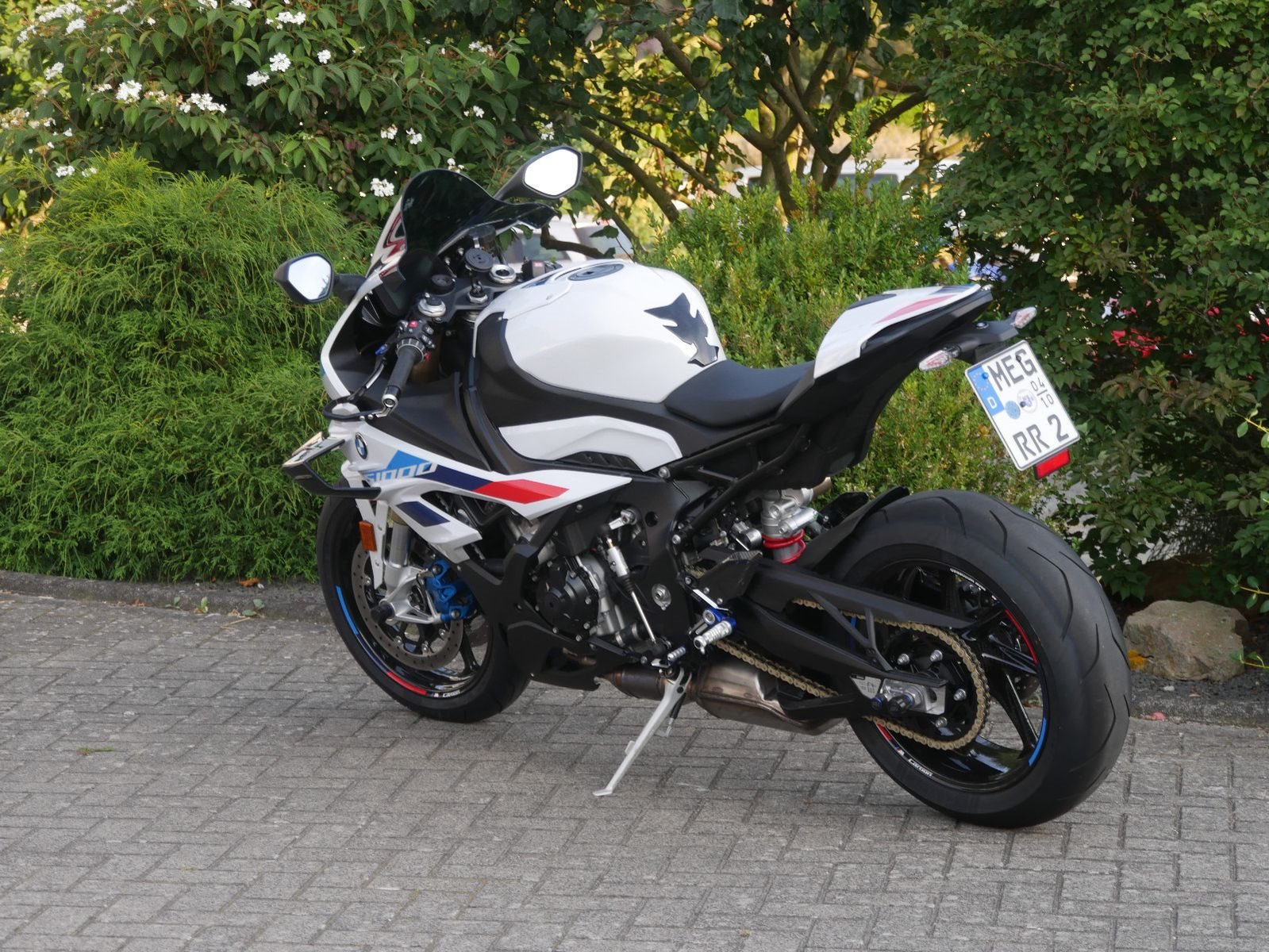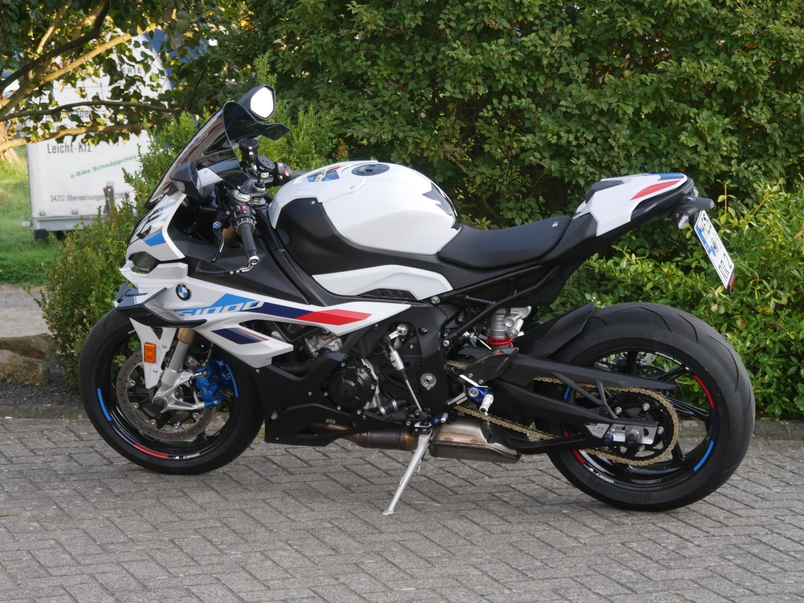 Neuwertige BMW S1000RR in sehr gepflegtem Zustand mit folgender BMW-Zubehörausstattung: Windschutzscheibe hoch getönt, Gabelschutz vorne, Brems-/ Kupplungshebelschutz außen, M-Brems-/ Kupplungshebel kurz umklappbar, Heckgabel Schutzprotektor, M-Endurance Kette, M-Paket, M-Carbonräder, M-Sportsitz, Dynamik-Paket, Soziuspaket, Heizgriffe, Fahrmodi Pro, RDC, Tempomat, Abdeckung Soziussitz und ein SP-Connect Handyhalter mit induktivem Laden. Die BMW hat ihre Einfahrkontrolle beim BMW-Händler bekommen, am 30.04.25 bei 650km.