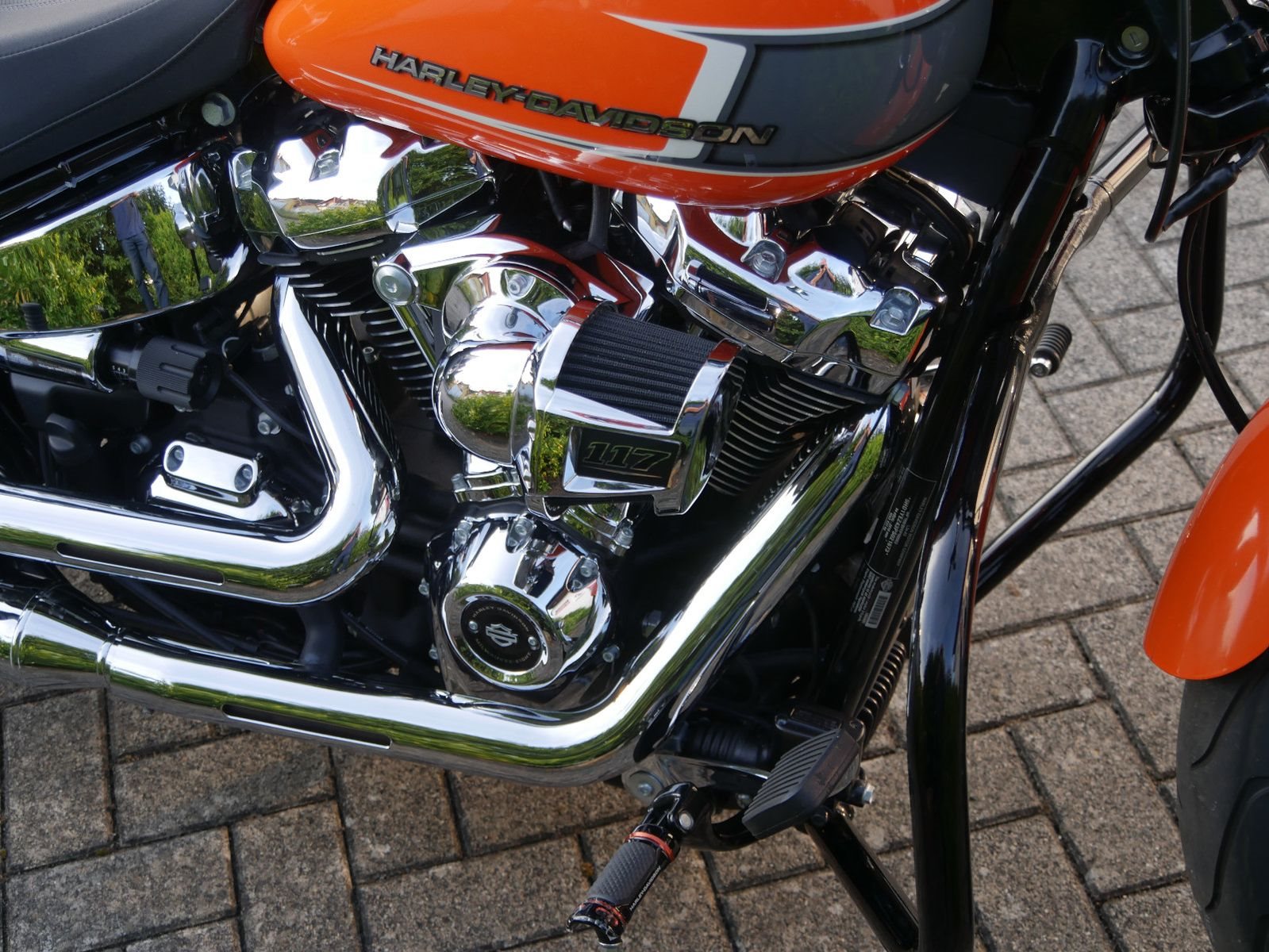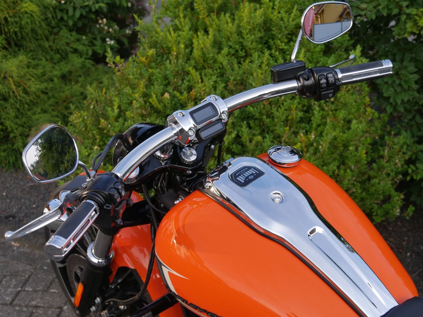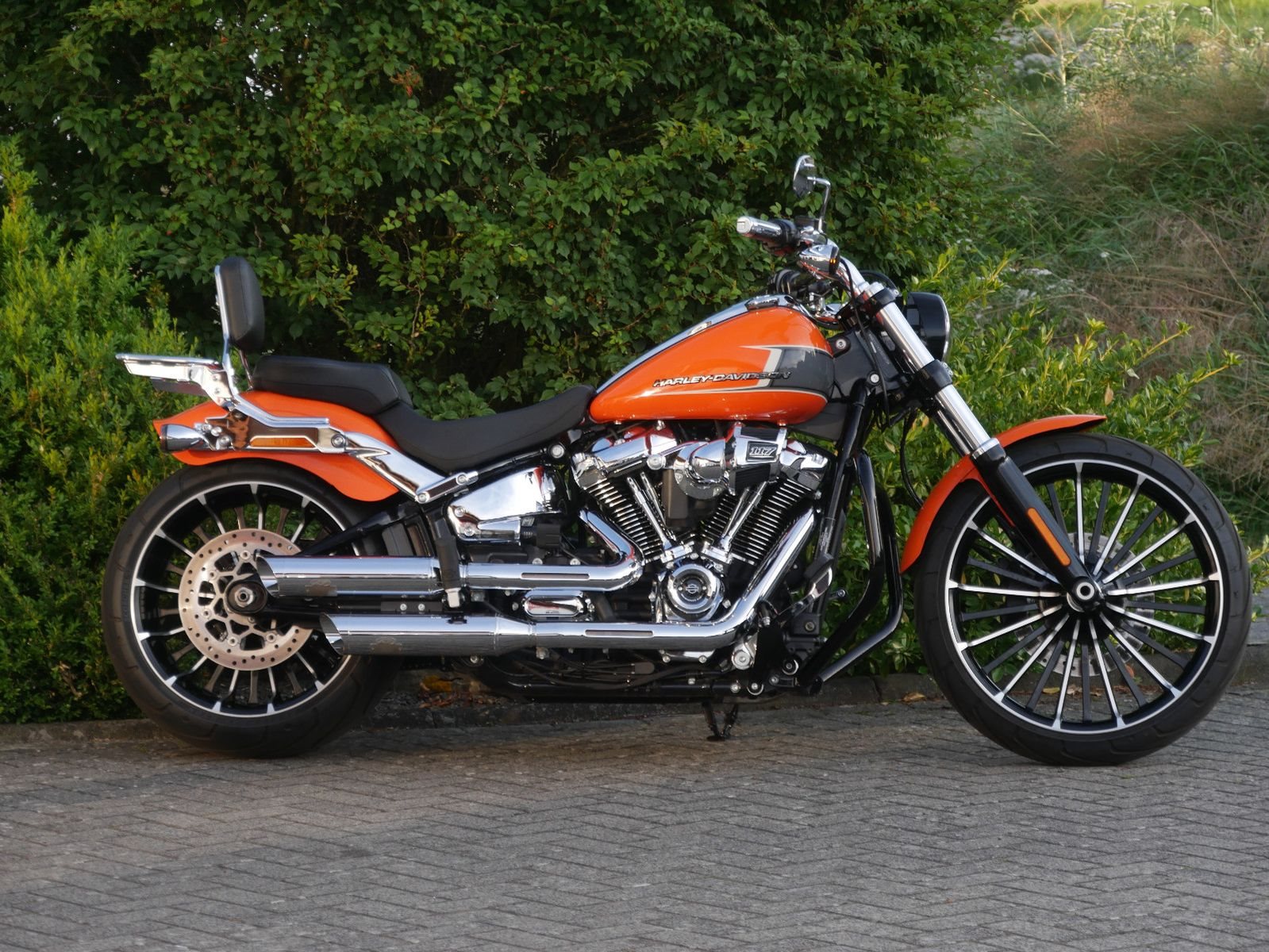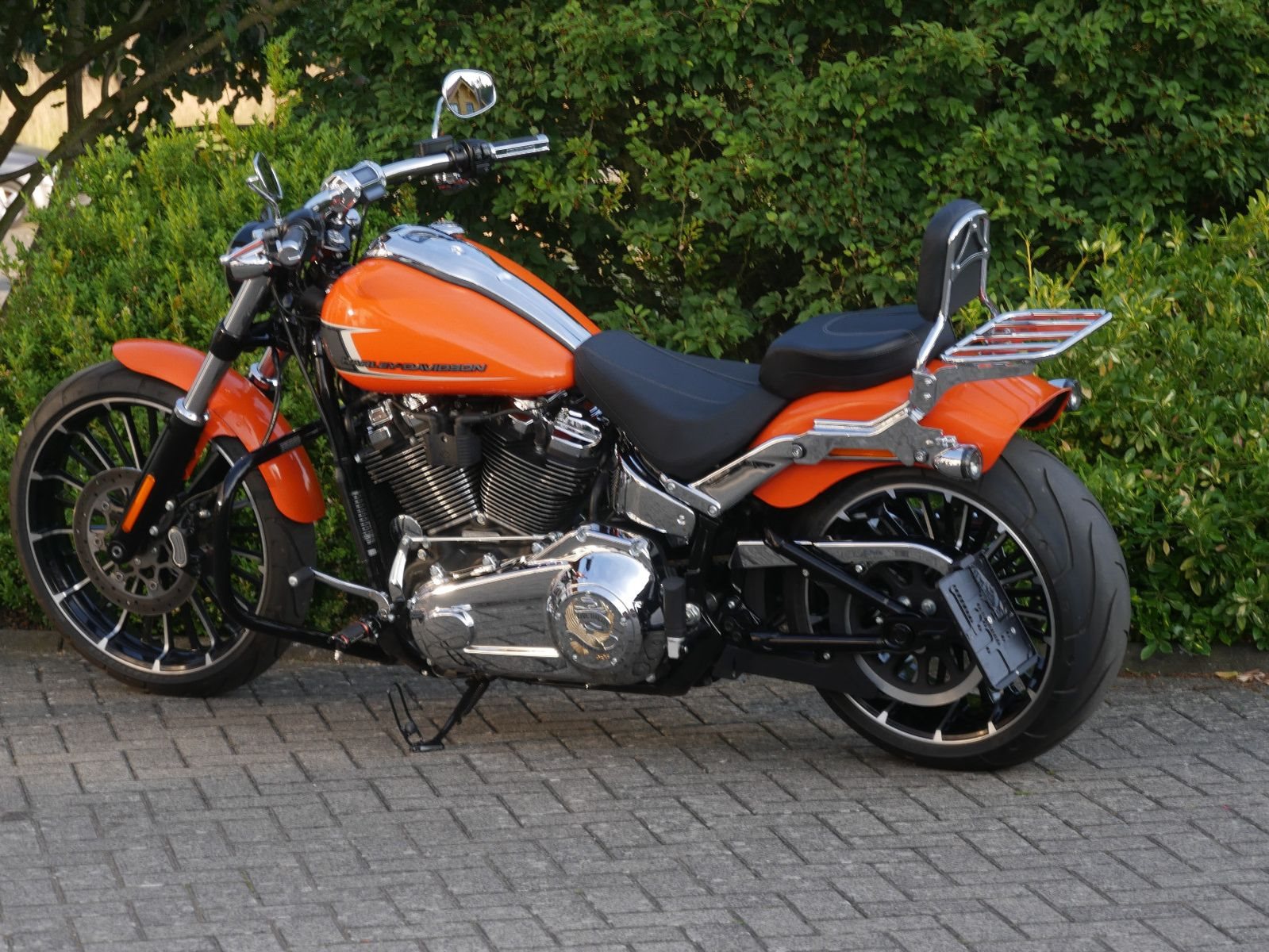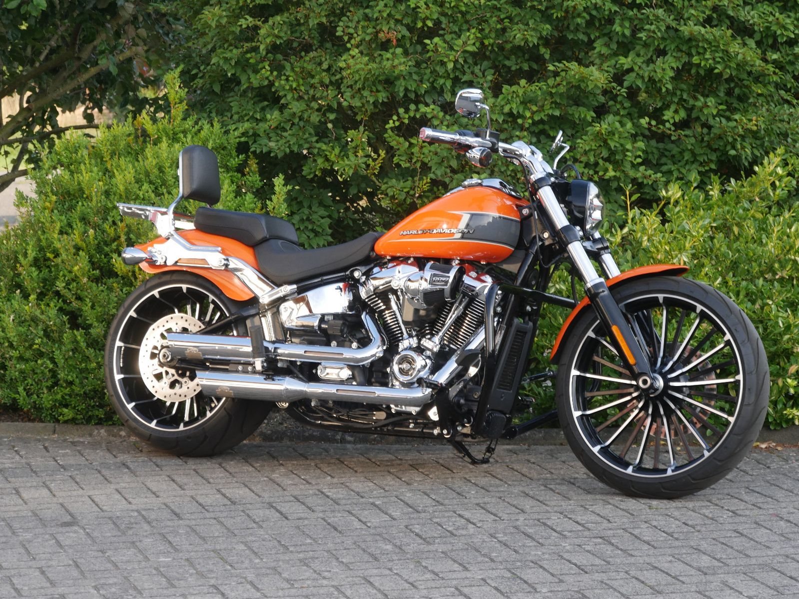 Neuwertige Harley-Davidson Breakout in schickem Orange mit folgender Ausstattung: Motorschutzbügel, abnehmbare Sissy-Bar mit Gepäckträger, HD-Griffe, Soziuskomfort- Sitz, Extra Kupplungsdeckel, Harley Zubehör- Fußrasten, abschließbarer Tankdeckel, seitlicher Kennzeichenhalter von Wunderlich und Jeckil & Hyde Klappenauspuffanlage. Die Breakout hat bereits 2 Inspektionen beim Harley- Händler bekommen, die letzte am 02.09.2025 beim Km- Stand 4959.
