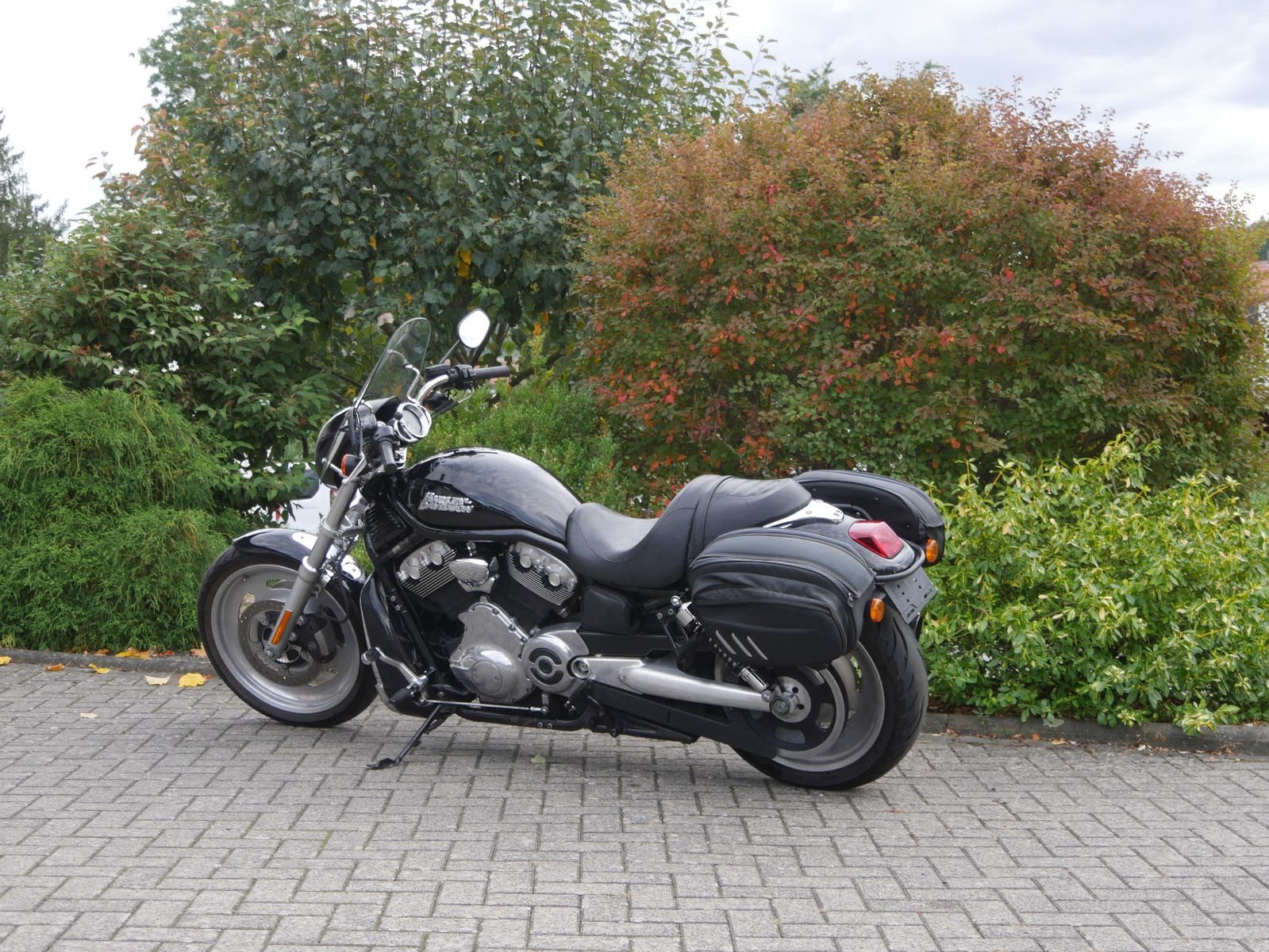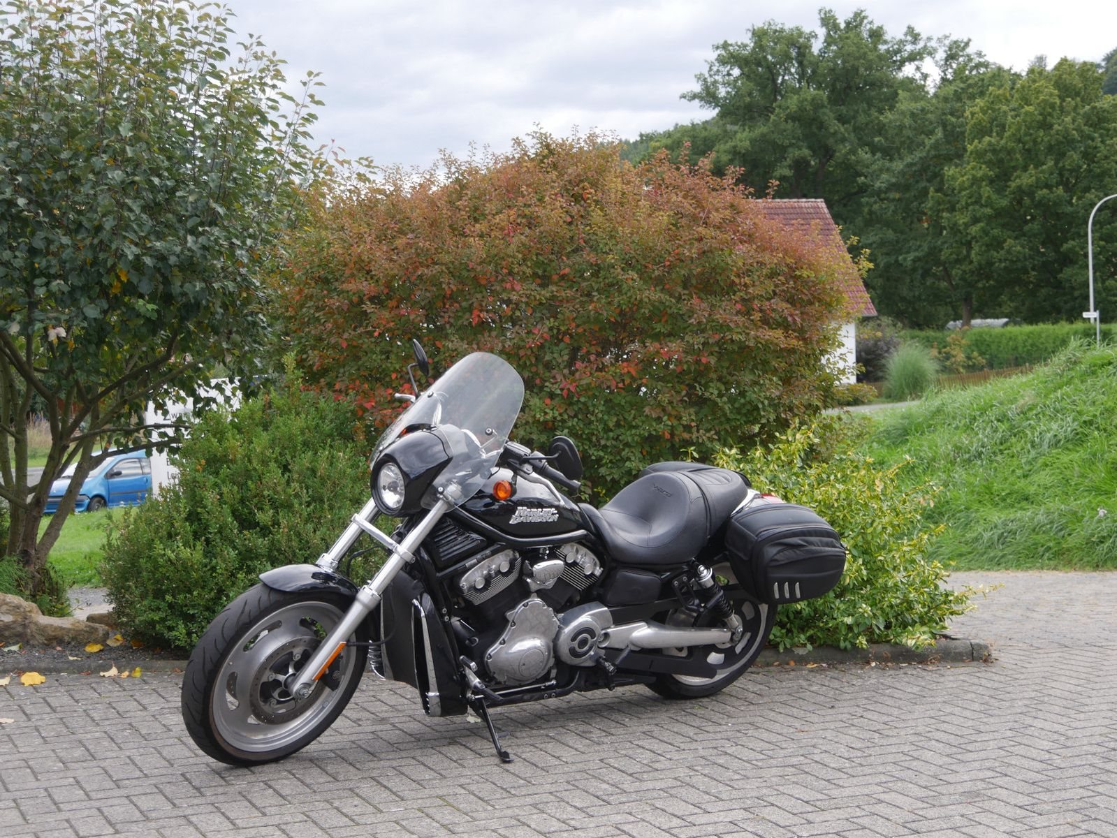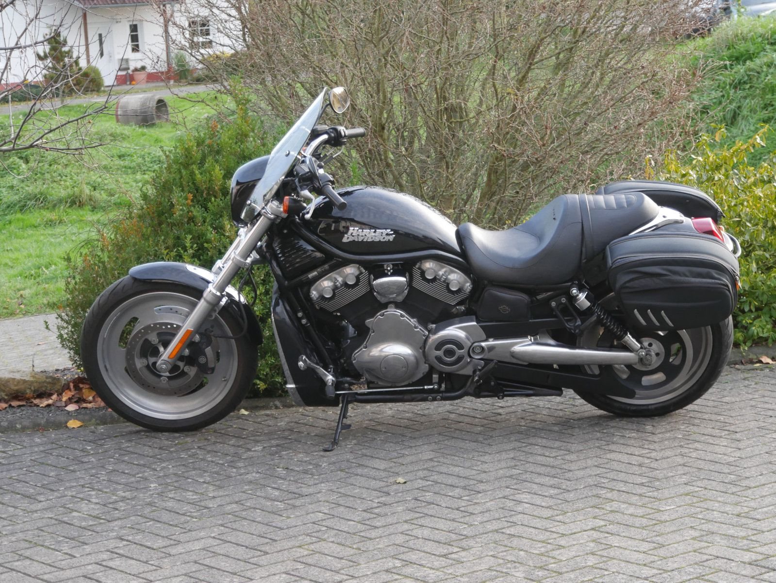 Schicke Harley-Davidson V-Rod Night deutsche 5HD- Variante in schwarz mit folgender Ausstattung: Mittelhohe Scheibe, und Harley-Davidson Seitentaschen. Die Harley hat 6 Inspektionen bekommen, die letzte bei 41.980km am 21.11.2024.