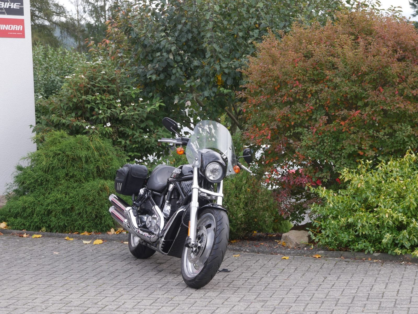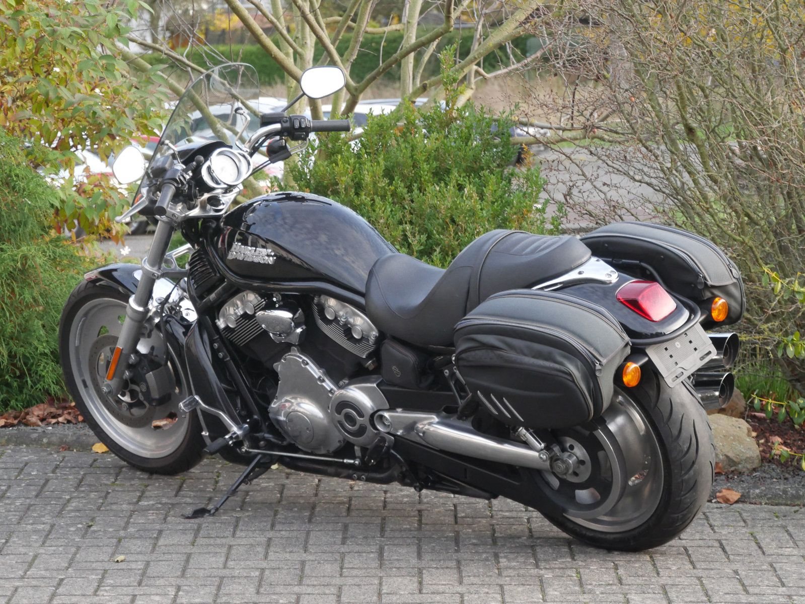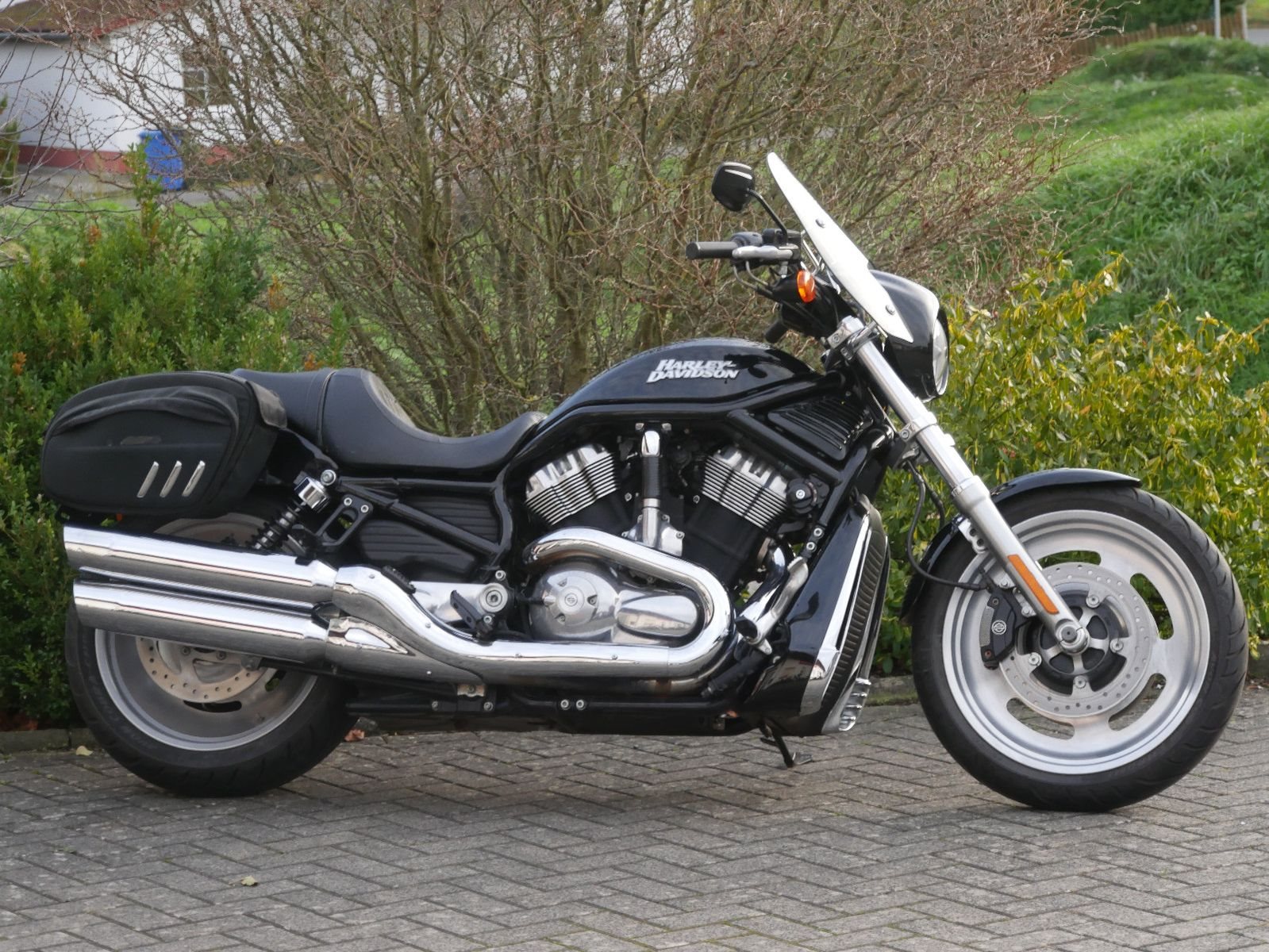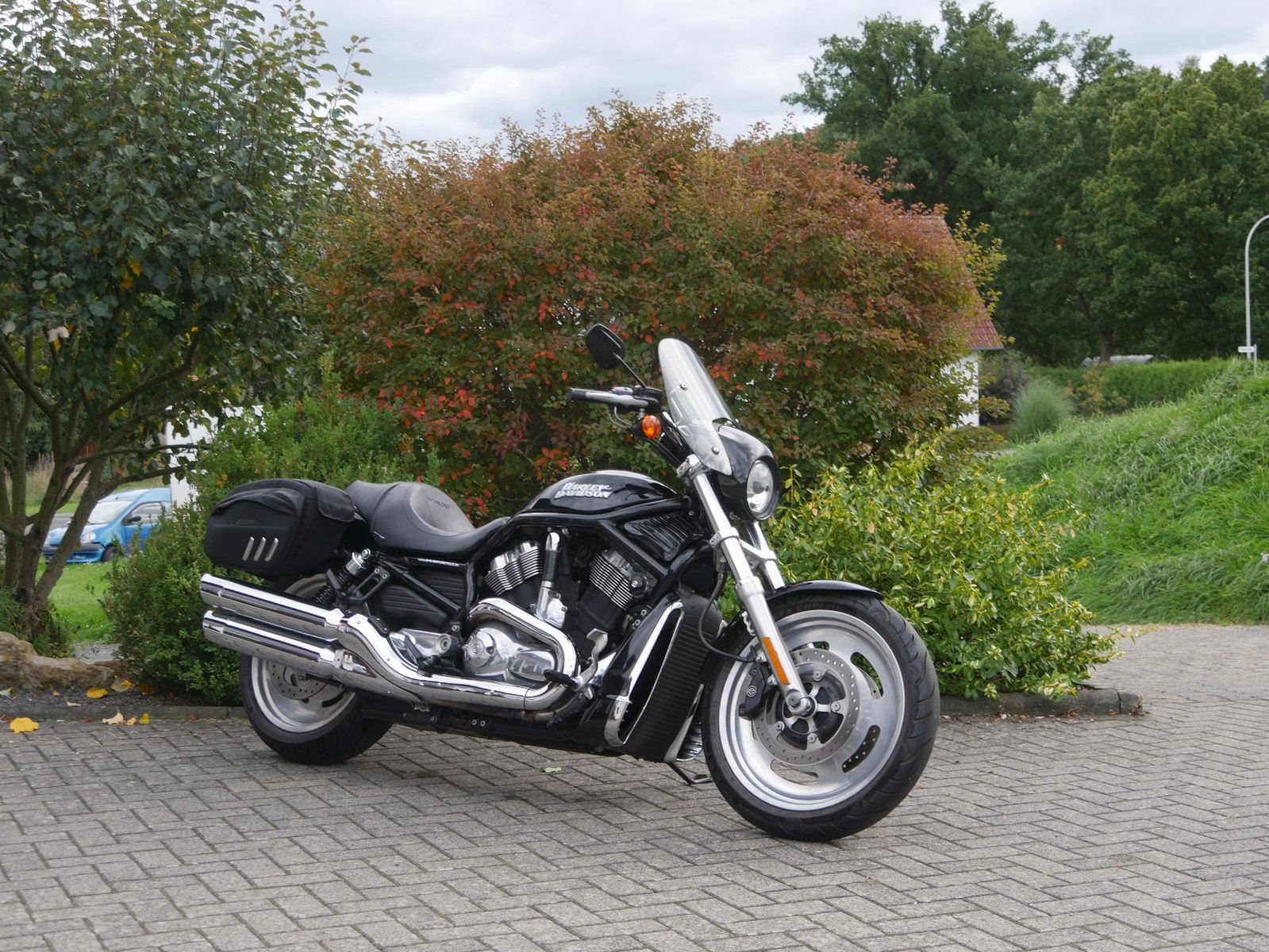 Schicke Harley-Davidson V-Rod Night deutsche 5HD- Variante in schwarz mit folgender Ausstattung: Mittelhohe Scheibe, und Harley-Davidson Seitentaschen. Die Harley hat 6 Inspektionen bekommen, die letzte bei 41.980km am 21.11.2024.