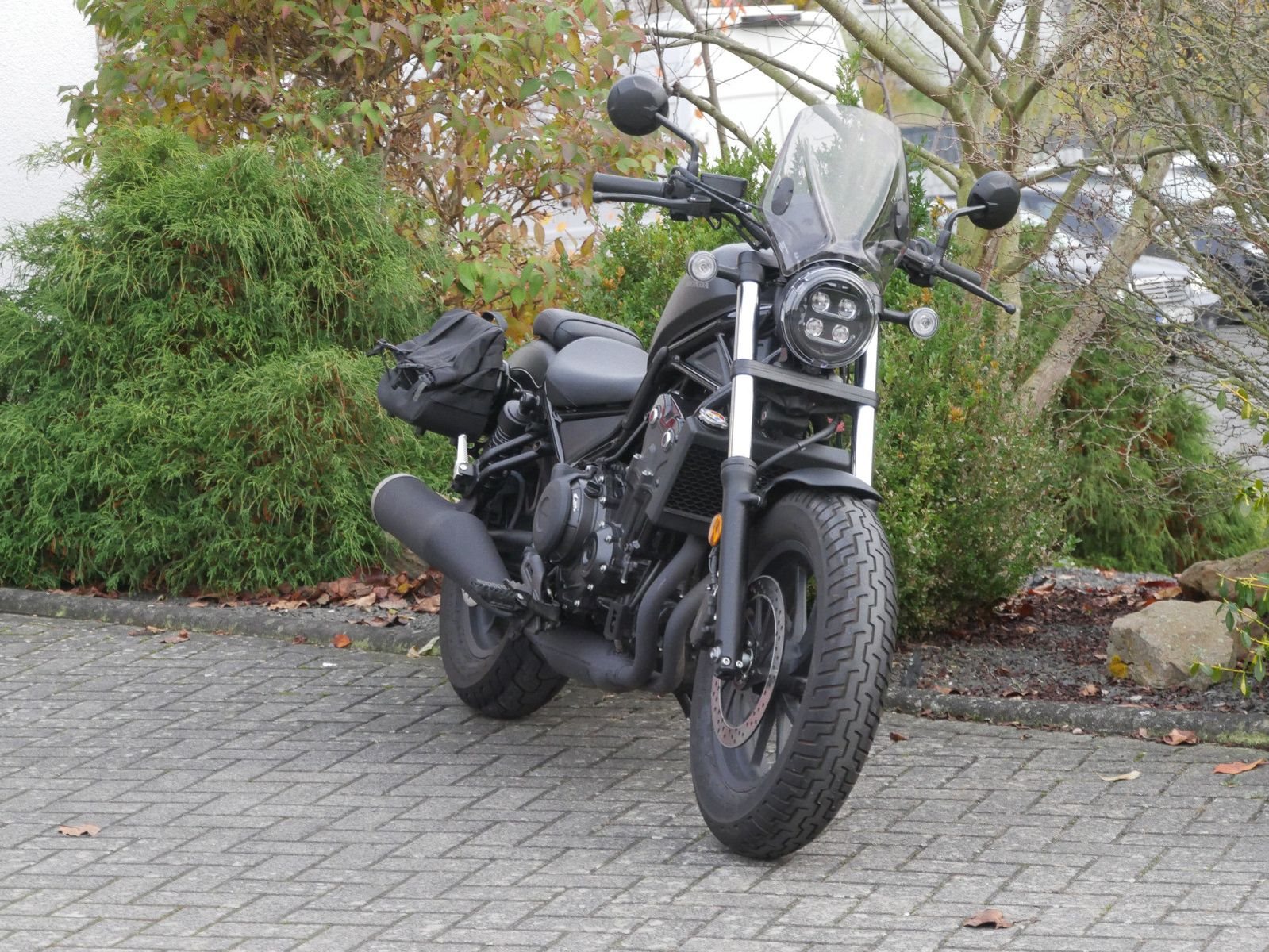 Gepflegte umkippfreie Honda CMX 500 Rebel in schickem schwarz-matt mit Puig-Windschild.