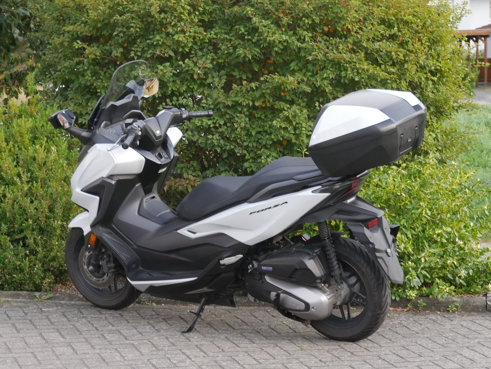 Gepflegter Honda Forza 125 in schickem weiß matt mit folgender Ausstattung: Honda Topcase mit Soziuslehne und Mittelständer. Der Forza hat 4 Inspektionen bekommen, die letzte am 15.08.2025 bei 18.581km.