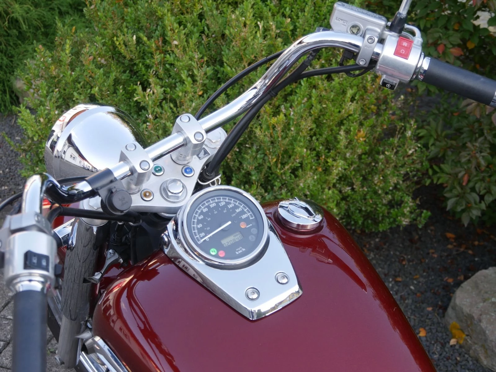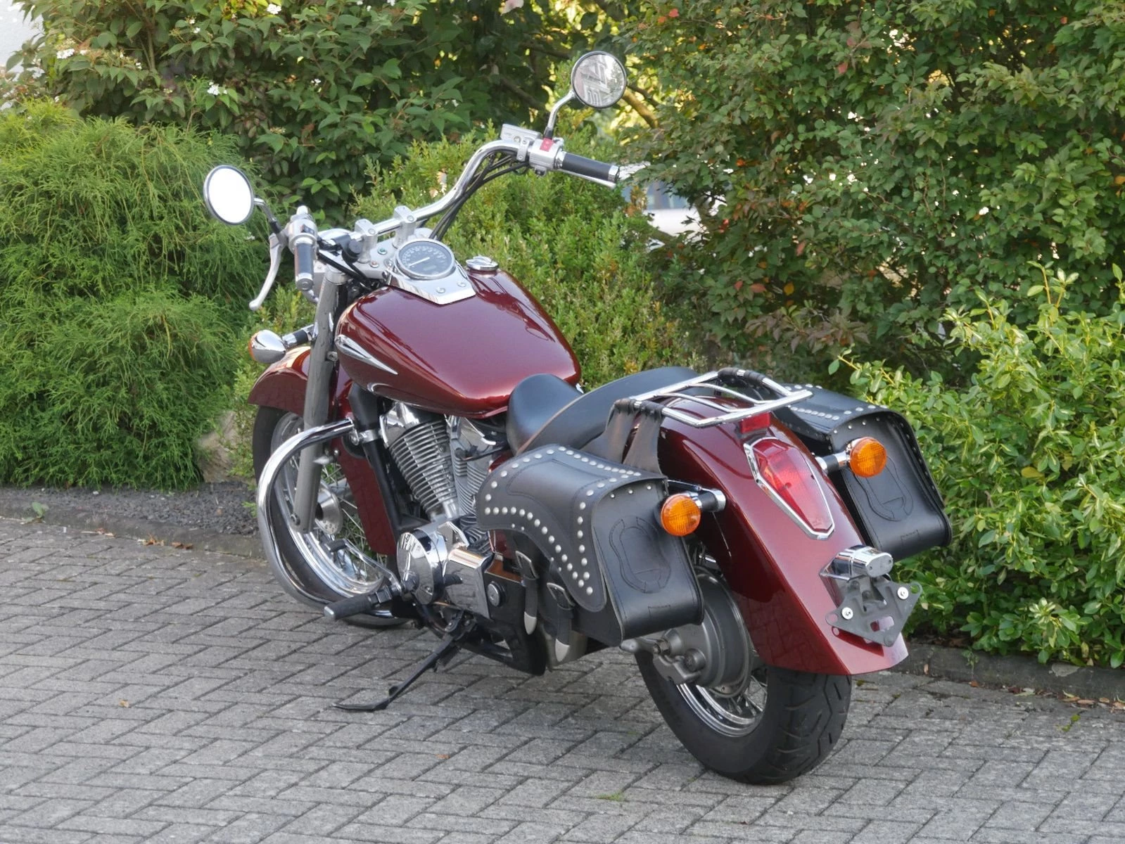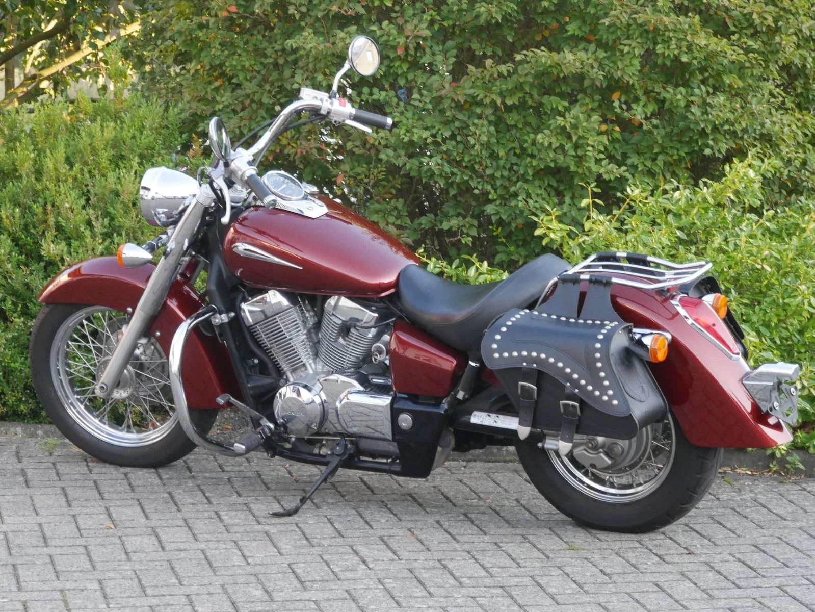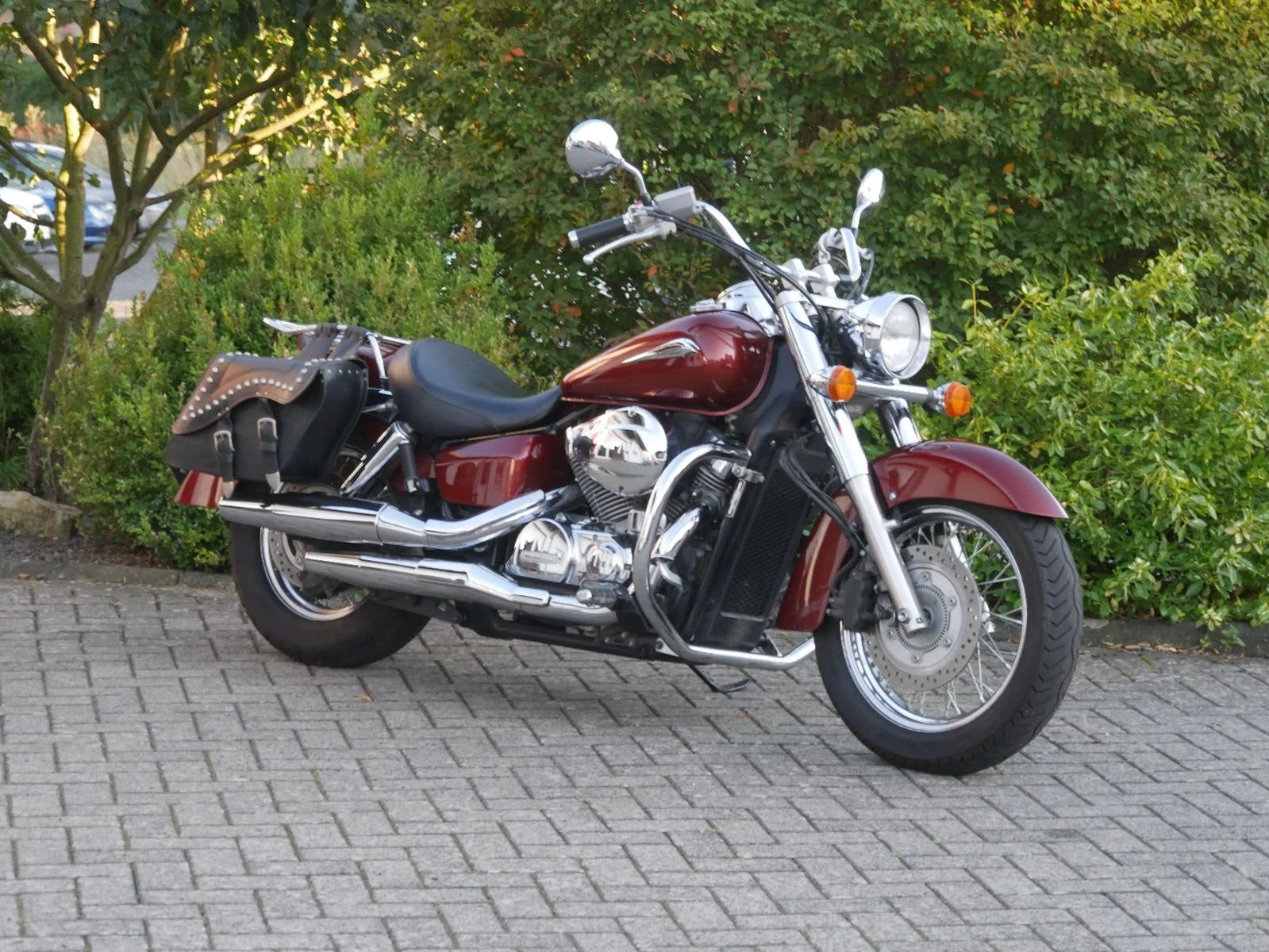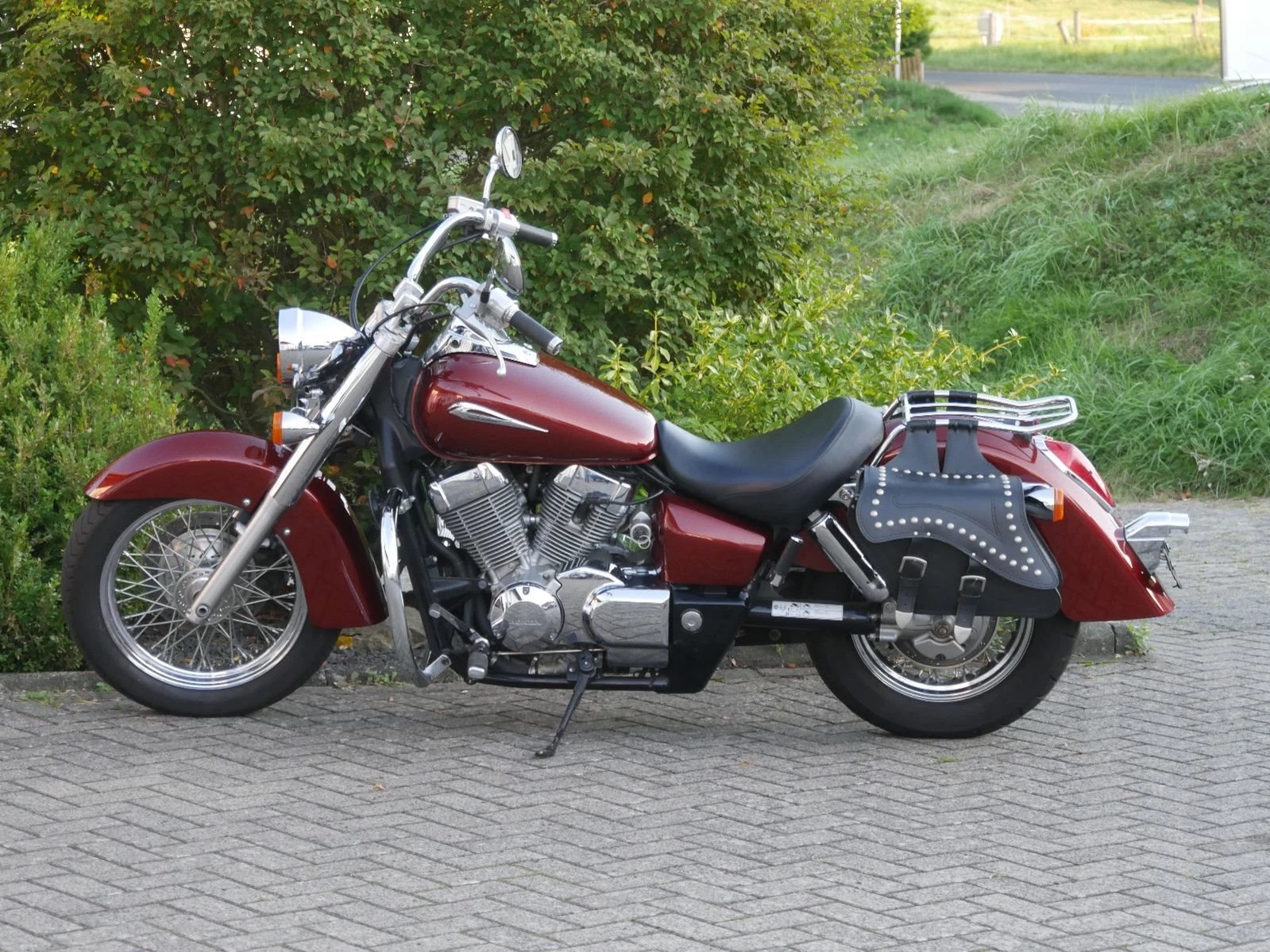 Top gepflegte Honda VT 750CS in schickem rot mit nützlichem Zubehör: ABS, Leder-Satteltaschen, Chrom-Schutzbügel, Chrom-Gepäckträger und 12V Steckdose am Lenker. Die Honda bekommt vor der Auslieferung noch eine frische Inspektion.
