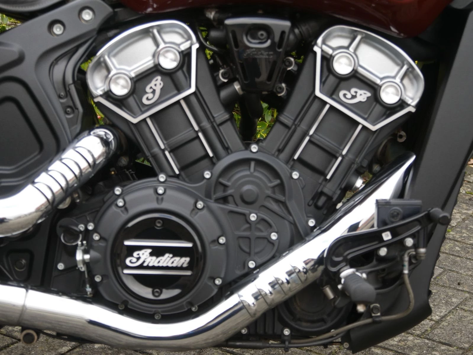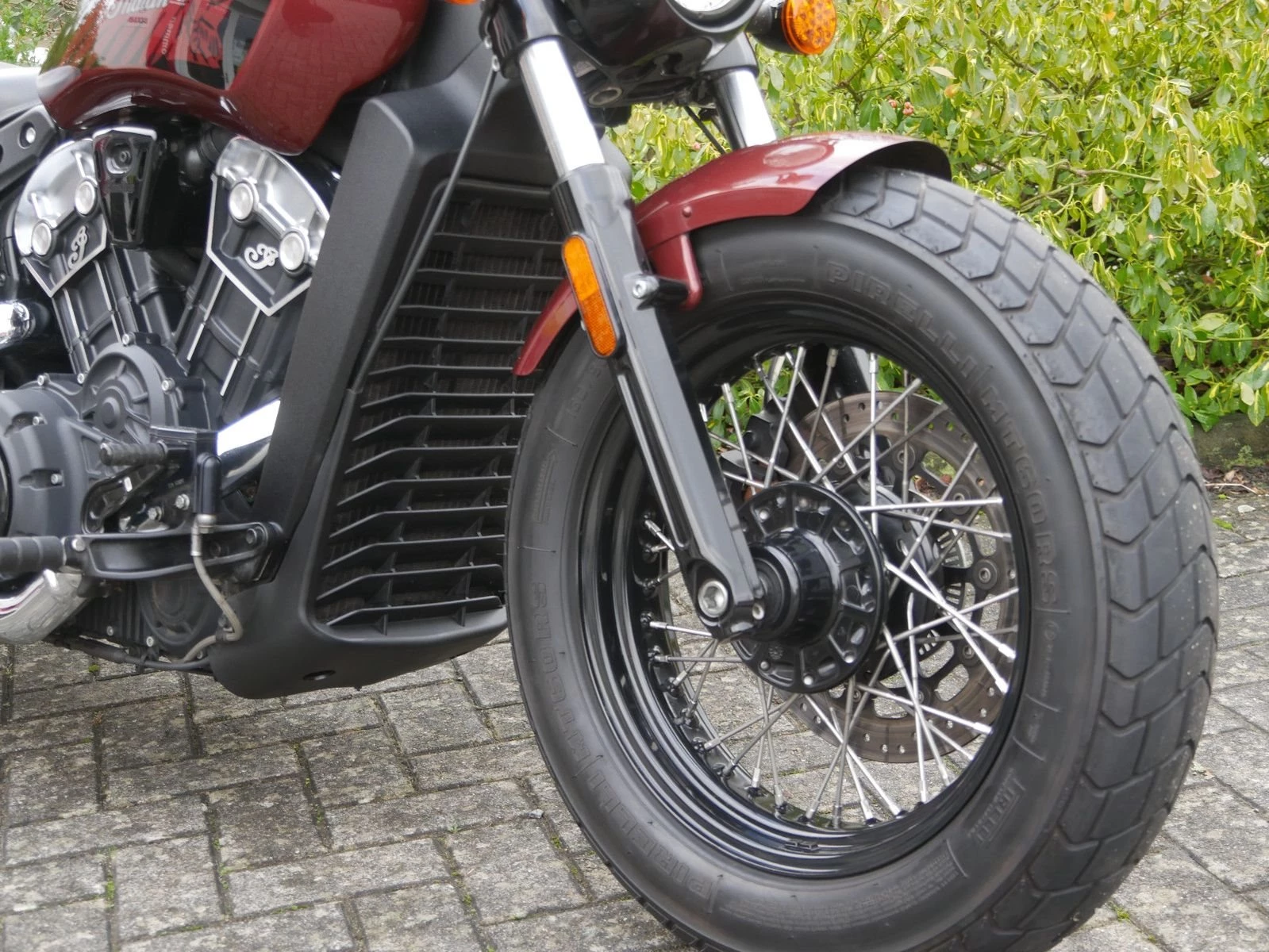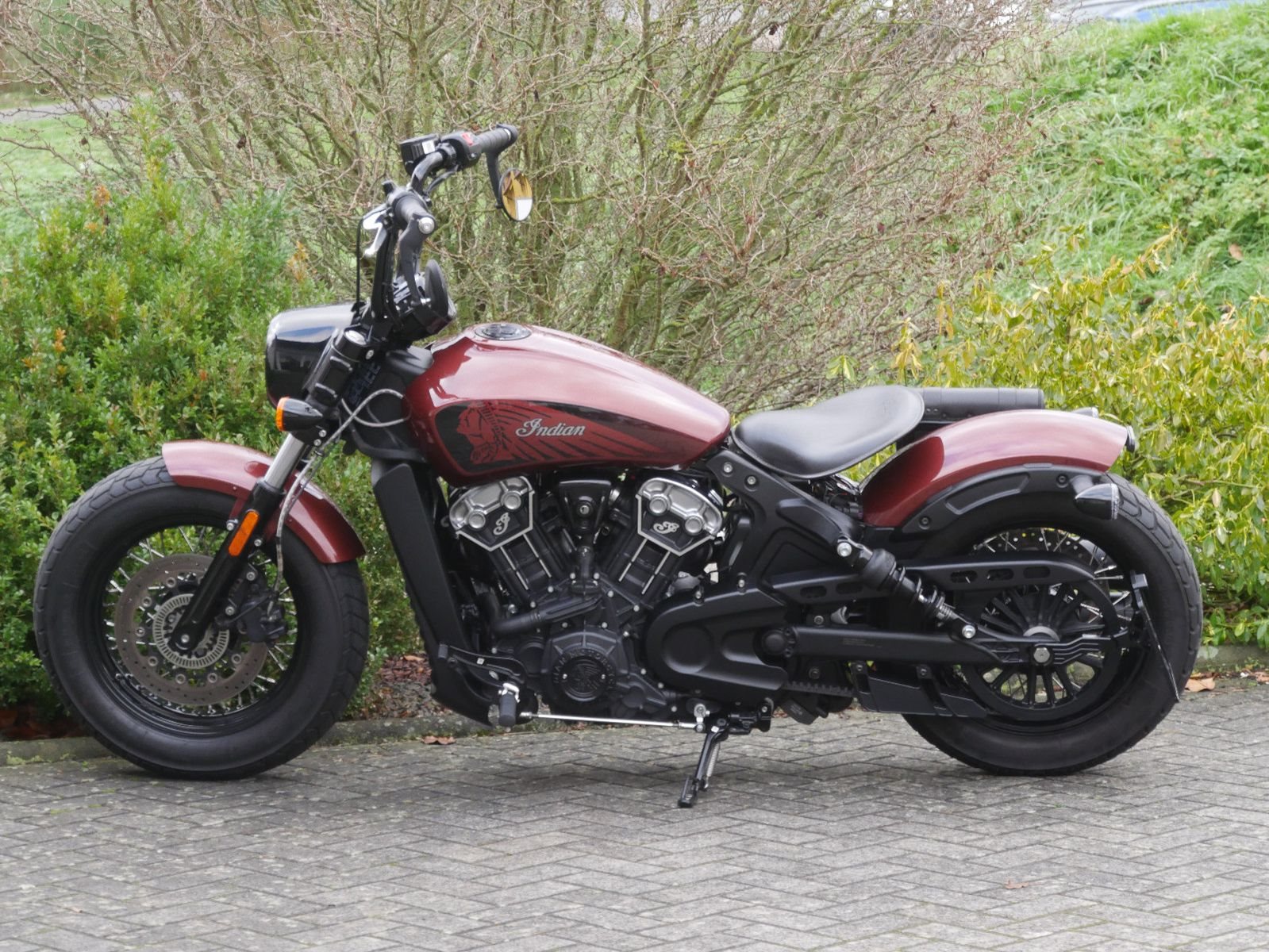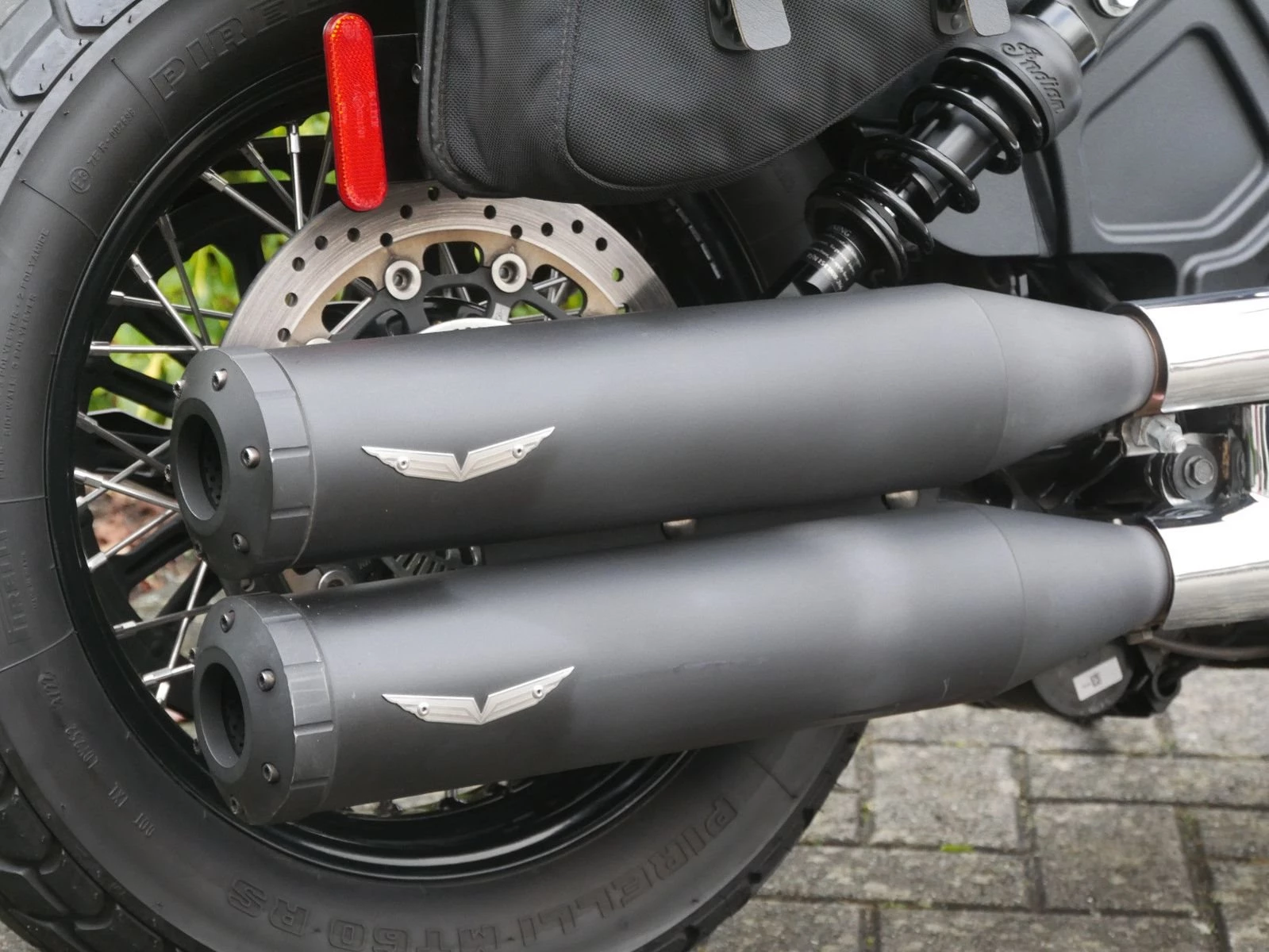 Schicke, sehr gepflegte Indian Scout Bobber Twenty mit einer Leder- Tasche rechts und seitlichem Kennzeichenhalter links.
