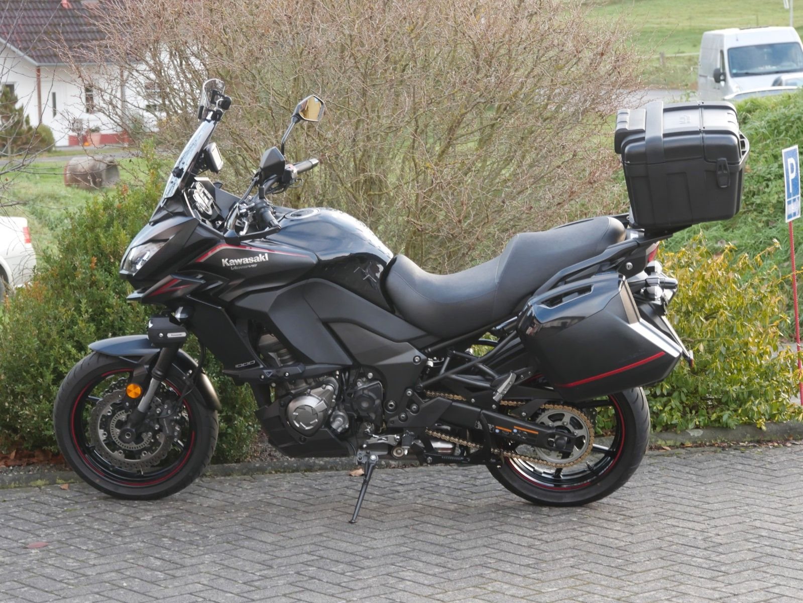 Gepflegte Kawasaki Versys 1000 in schickem schwarz mit folgender Ausstattung: Scheibe mit MRA-Spoiler, Kawasaki Nebelscheinwerfer, Kawasaki- Sturzpads, Kawasaki-Handschützer, Heizgriffe und Kawasaki-Seitenkoffer.