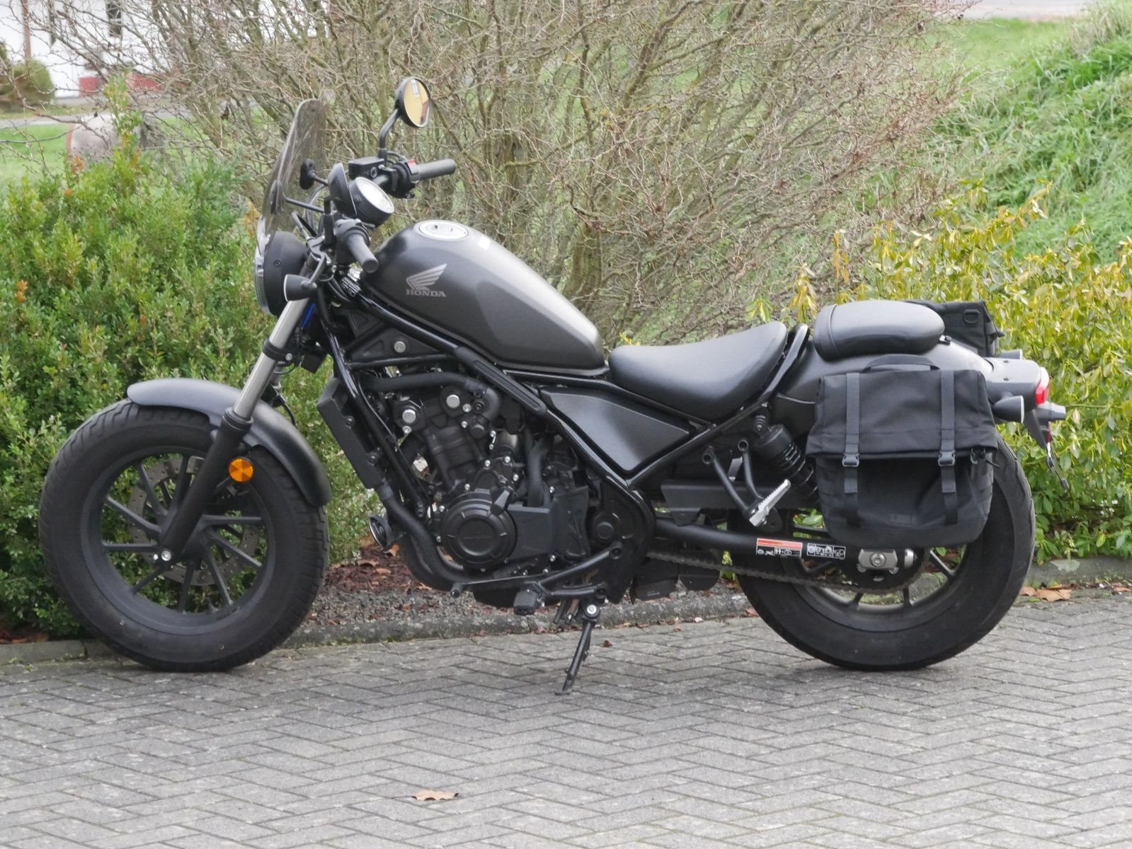 Gepflegte umkippfreie Honda CMX 500 Rebel in schickem schwarz-matt mit Puig-Windschild.