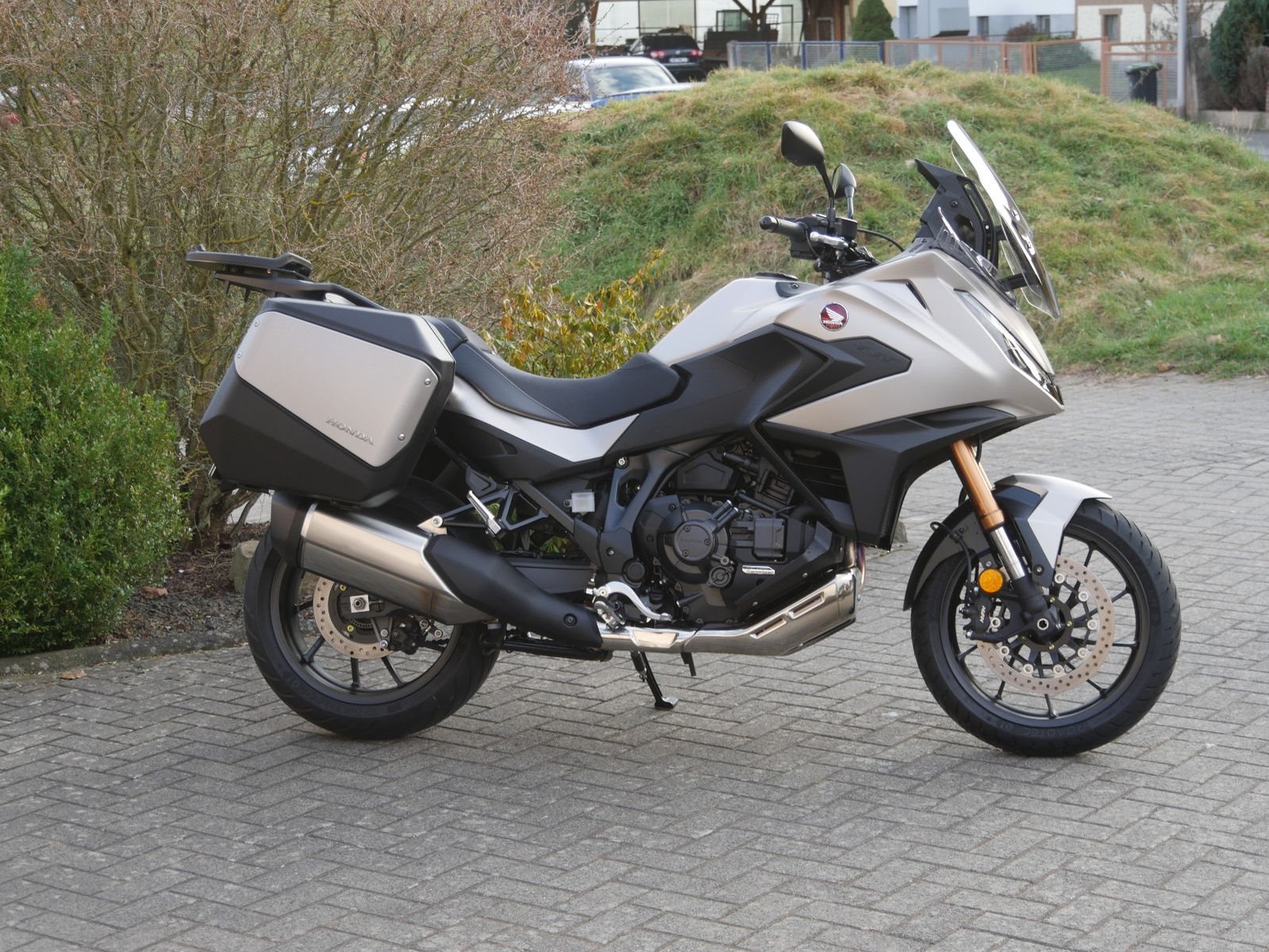 Neuwertige 2025er NT1100 mit DCT- Getriebe, Electronic Suspension, Koffersystem, Hauptständer, 5- fach verstellbarem Windschild, Heizgriffen und Tempomat. Die 1000Km- Inspektion wurde im September 25 durchgeführt. Das Motorrad hat bereits die 6- jährige Hondagarantie!