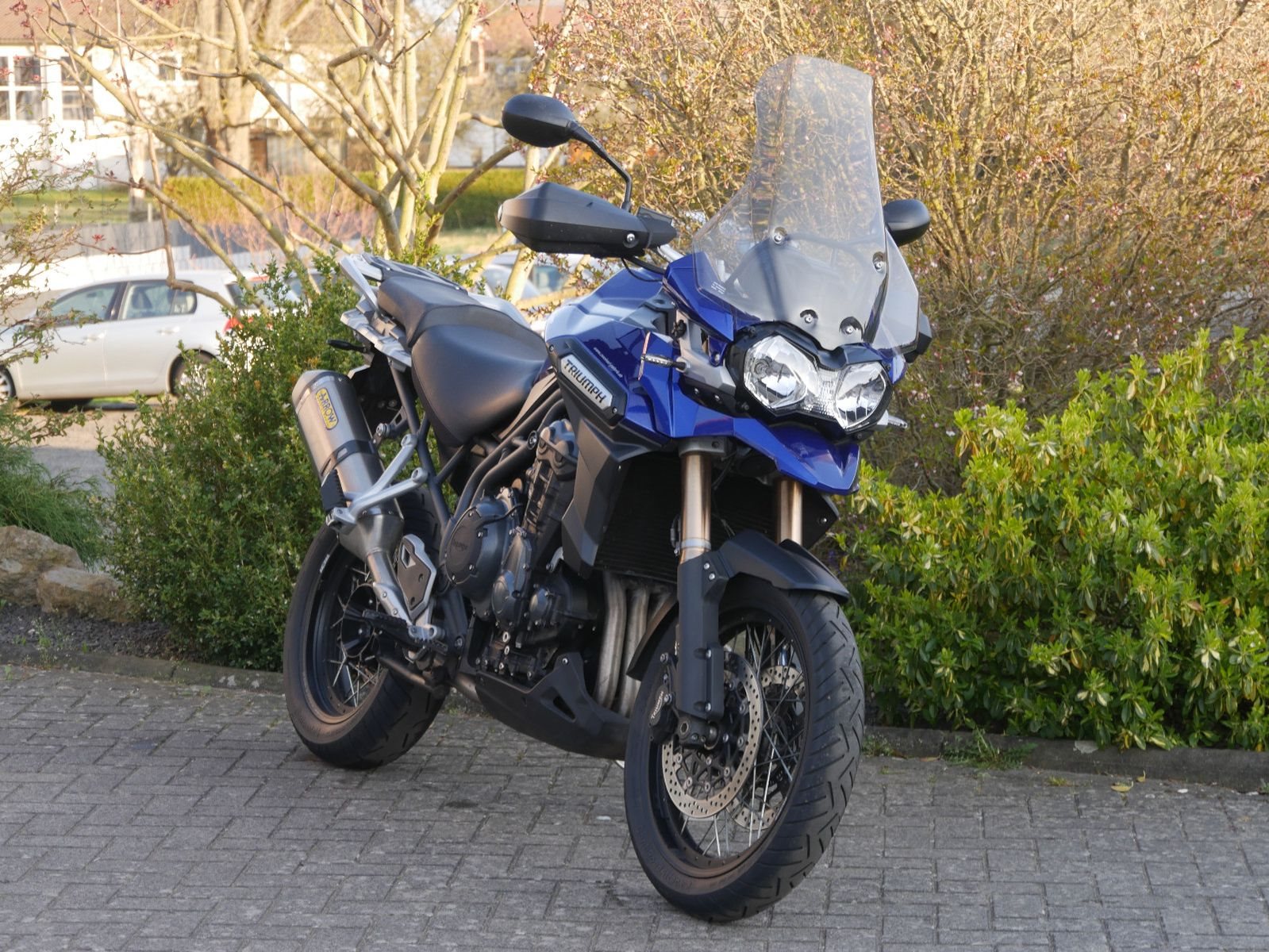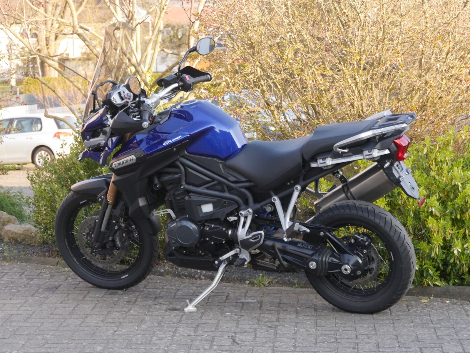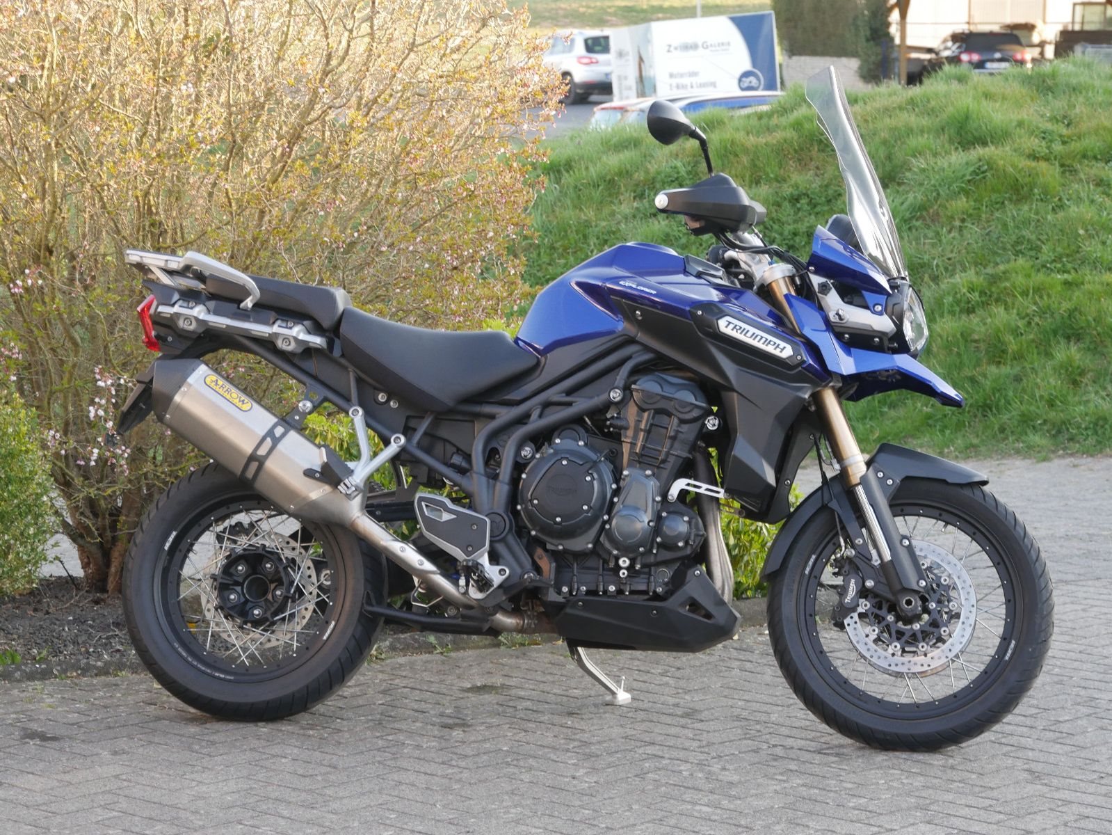 Gebrauchte Triumph Tiger Explorer XC mit Speichenfelgen im gepflegten Zustand. Die Triumph ist mit hohem Windschild und Arrow- Endschalldämper ausgestattet. Das Motorrad hat einige Service- Nachweise.