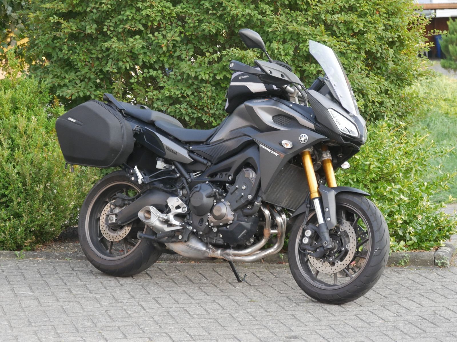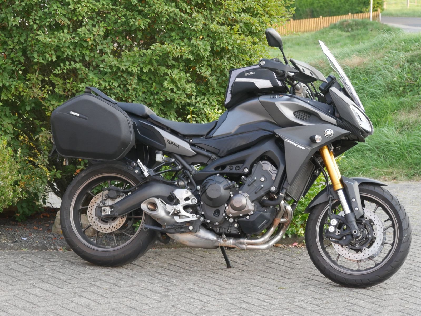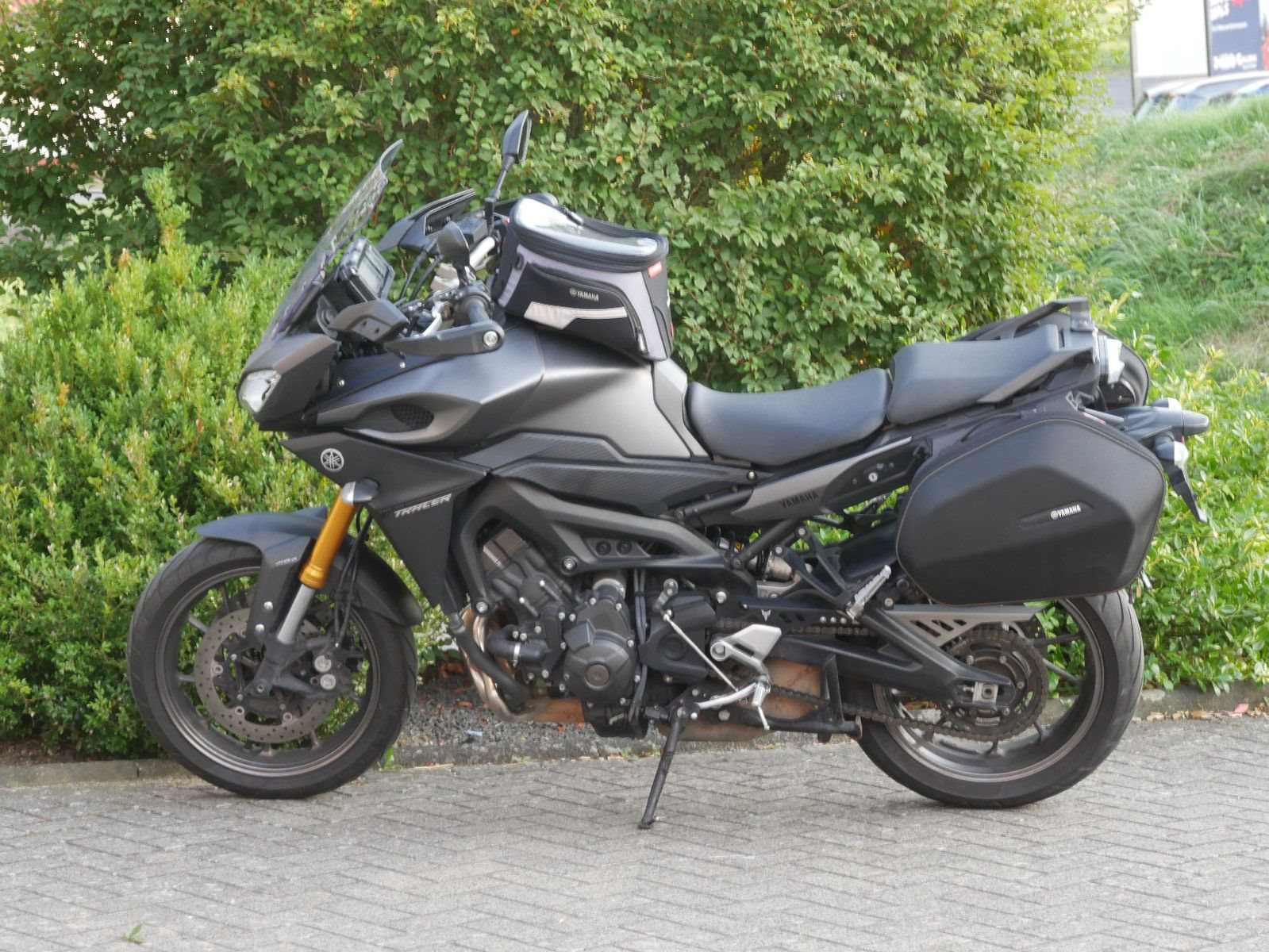 Gepflegte Yamaha MT-09 Tracer in schickem grau-matt mit folgender Ausstattung: Yamaha Tankrucksack, Yamaha Seitenkoffer, Handschützer und Mittelständer. Die Yamaha hat 5 Inspektionen bekommen, die letzte 37.587km. Vor der Auslieferung bekommt sie noch eine frische Inspektion bei uns.