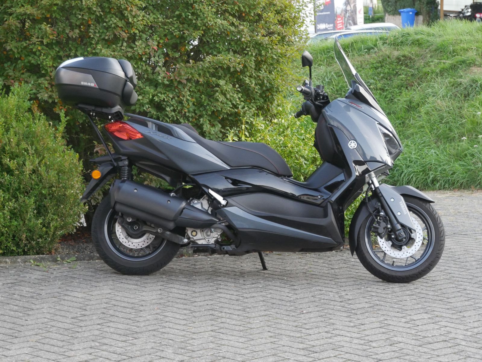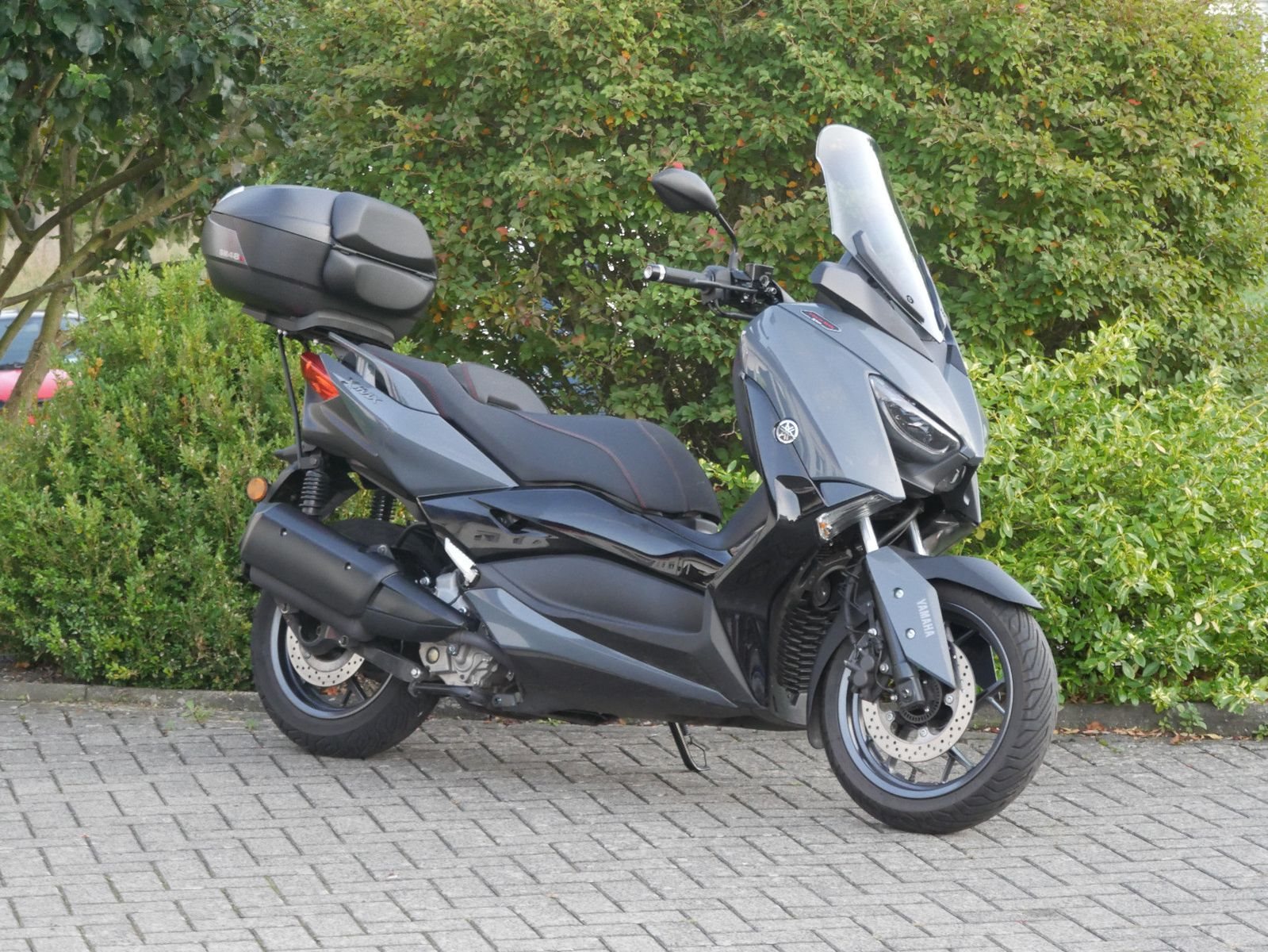 Schicker umkippfreier Yamaha X-Max 300 Tech Max in grau/ schwarz mit SHAD SH48 Topcase und Rückenlehne. Der X- Max hat bisher 3 Wartungen bekommen, die letze im April 2024 bei Km- Strand 7891. Vor der Auslieferung bekommt der Roller noch einen frischen Service.